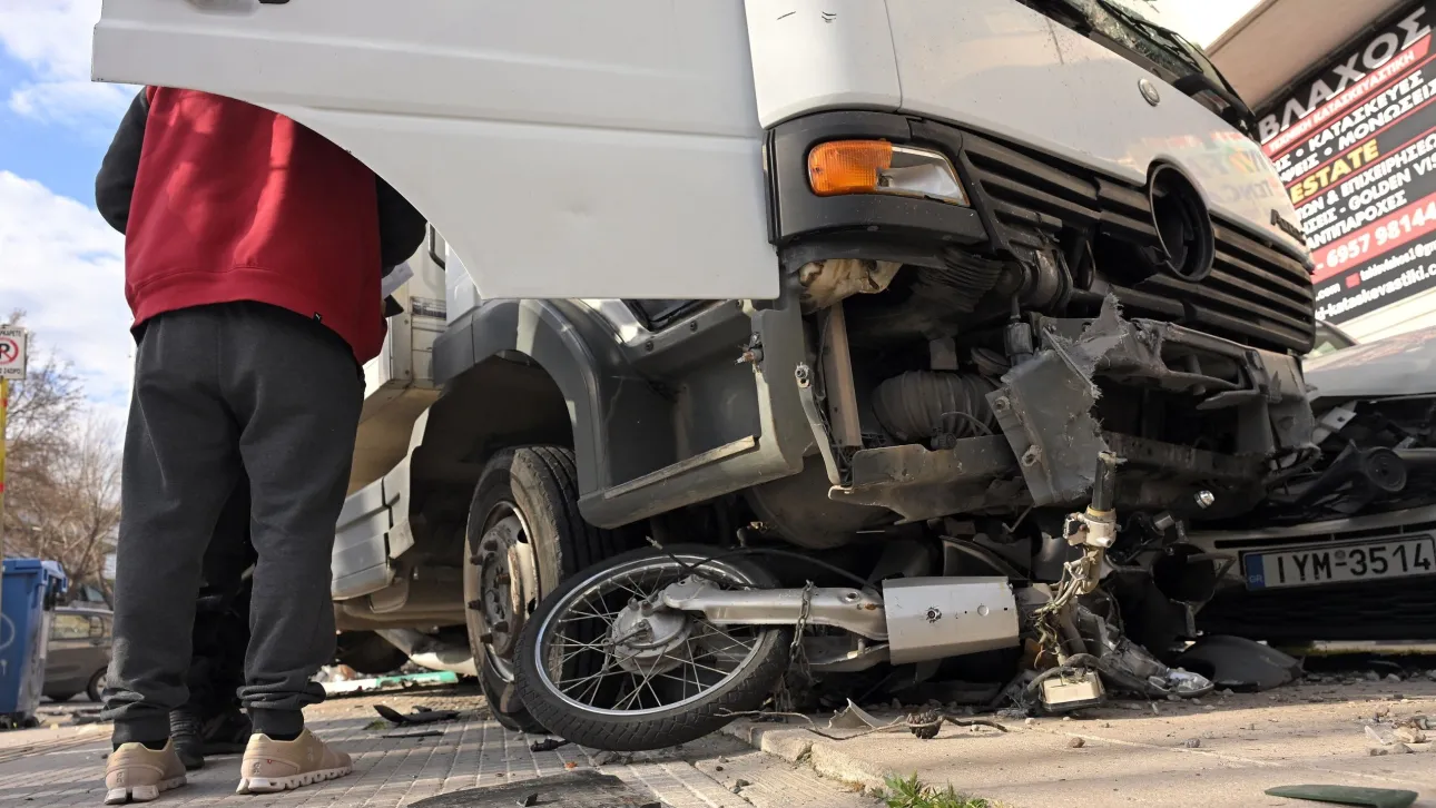 Κινούμενο προς Αιγάλεω το φορτηγό πέρασε τη διαχωριστική νησίδα, μπήκε στο αντίθετο ρεύμα και παρέσυρε τέσσερα αυτοκίνητα και σταθμευμένες μοτοσικλέτες.