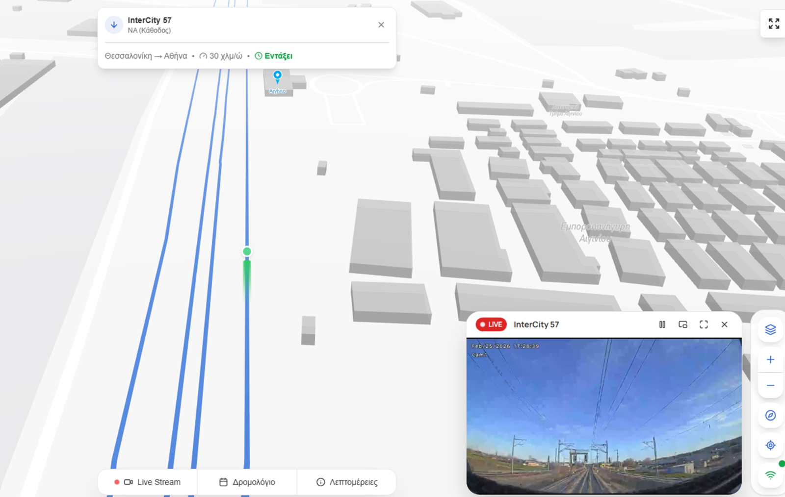 Από σήμερα, οι πολίτες μπορούν να παρακολουθούν τα επιβατικά τρένα που κινούνται στον άξονα Αθήνα - Θεσσαλονίκη. Σταδιακά η λειτουργία της πλατφόρμας θα επεκταθεί σε ολόκληρο το σιδηροδρομικό δίκτυο.
